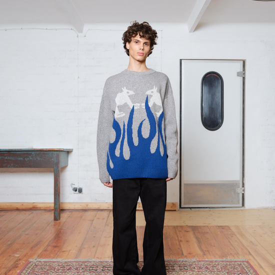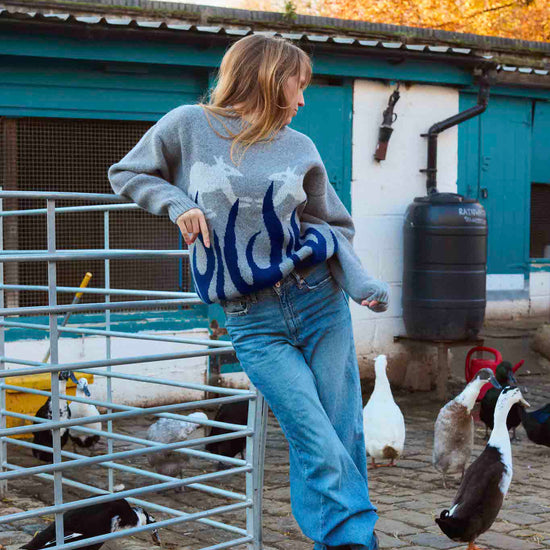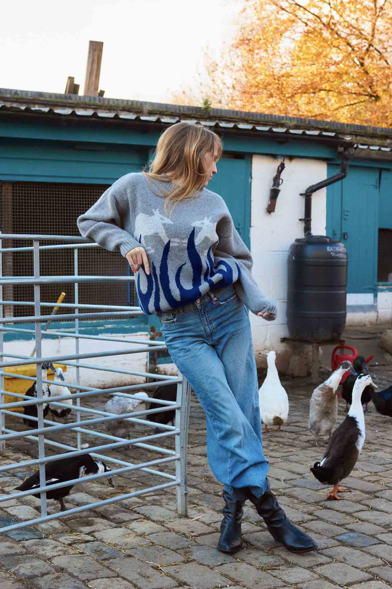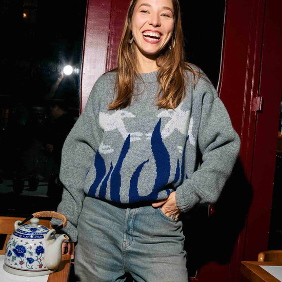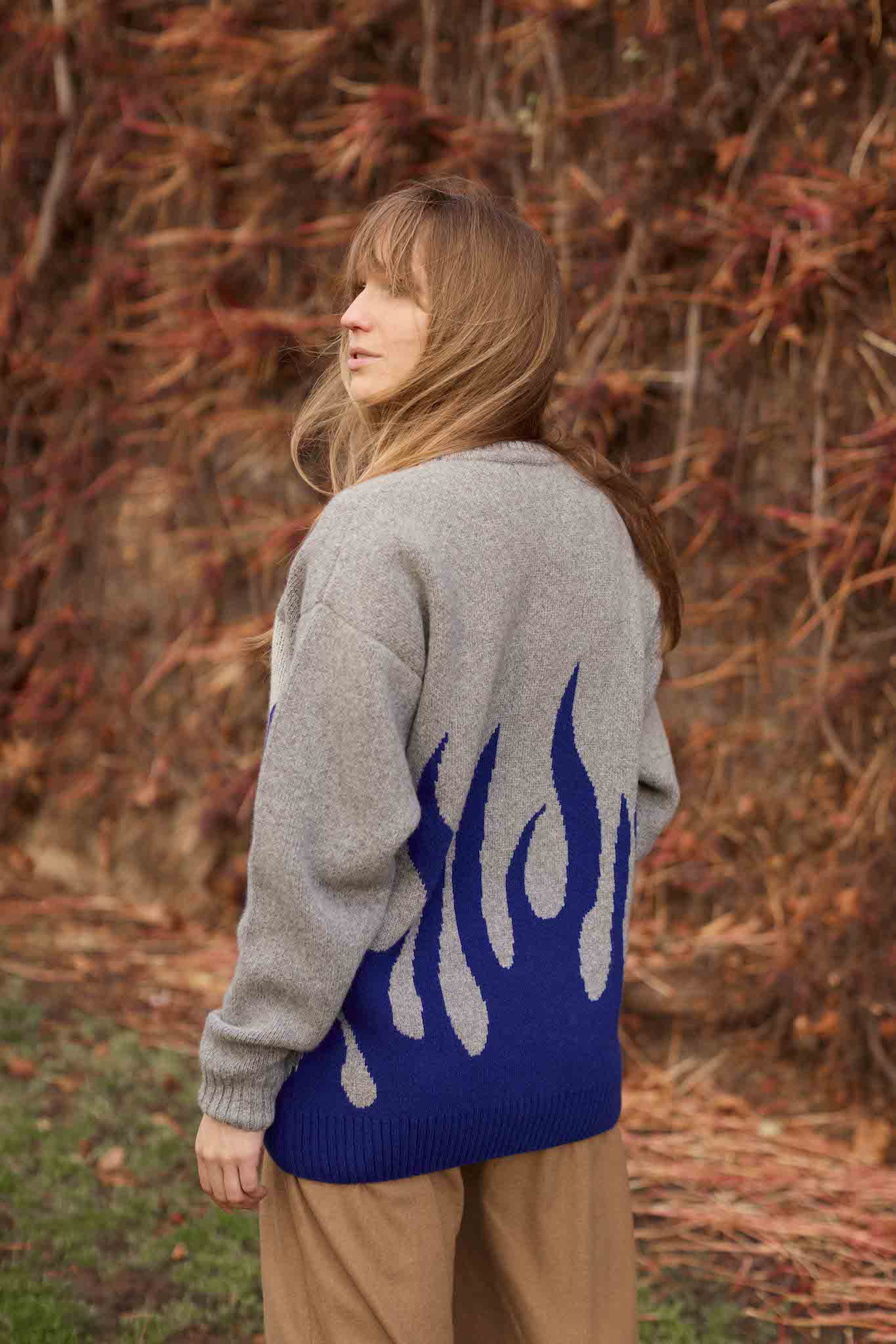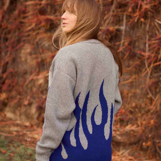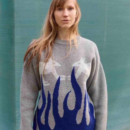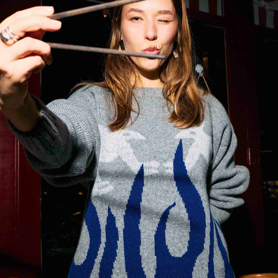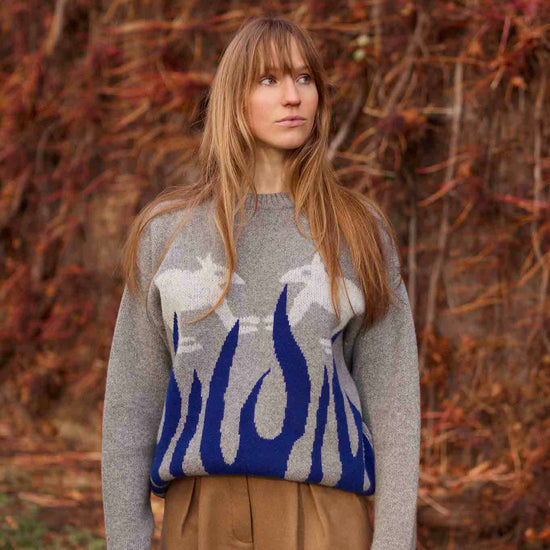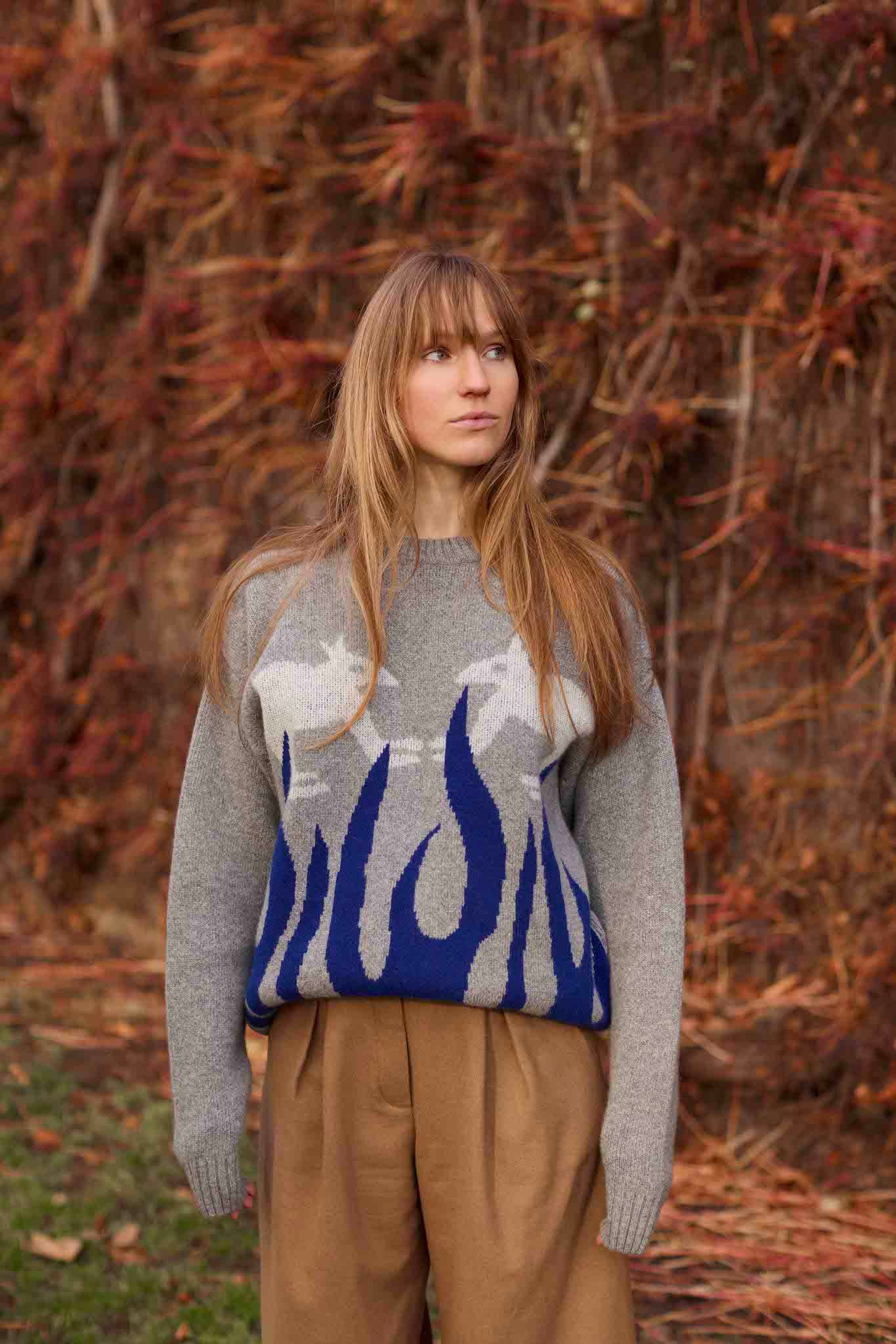 Made from 100% extrafine Italian lambswool, this sweater is soft to the touch, cozy without weight, and naturally breathable. Its oversized, unisex shape is brought to life in rich tones and a unique burning bunnies hand-drawn design - crafted for those who love to feel one of a kind.